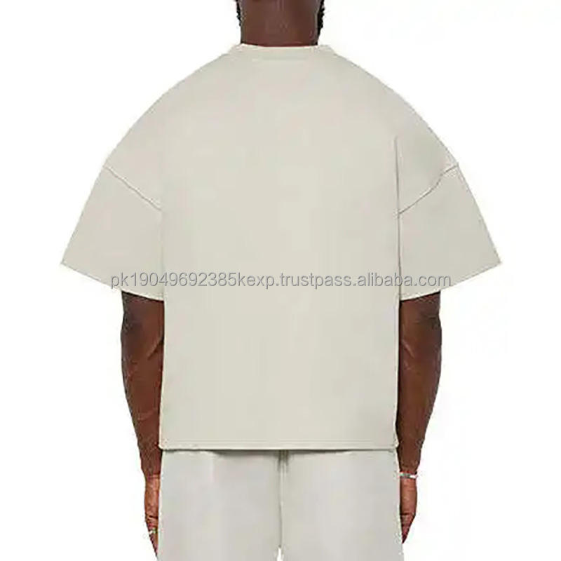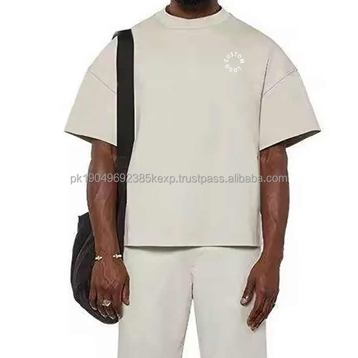 High Quality Custom Printed Mock Neck Drop Shoulder Loose Fit Blank Heavyweight Thick Cotton Oversized Cropped Boxy T-shirt Men