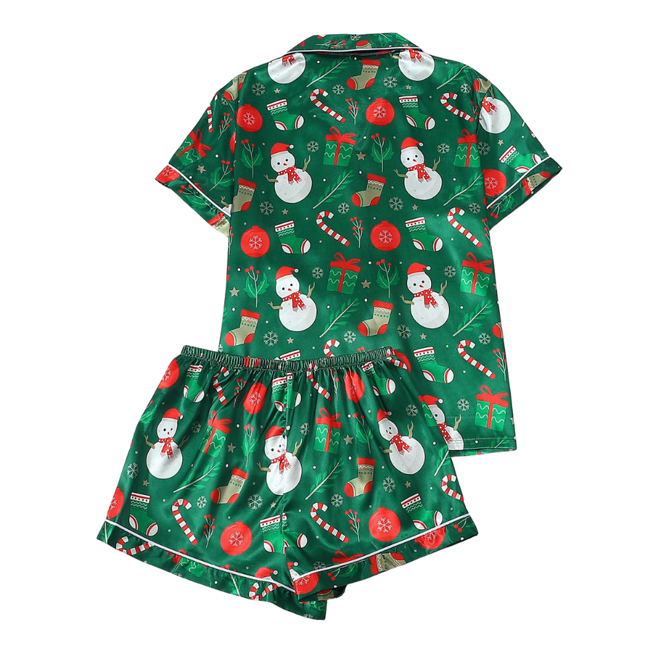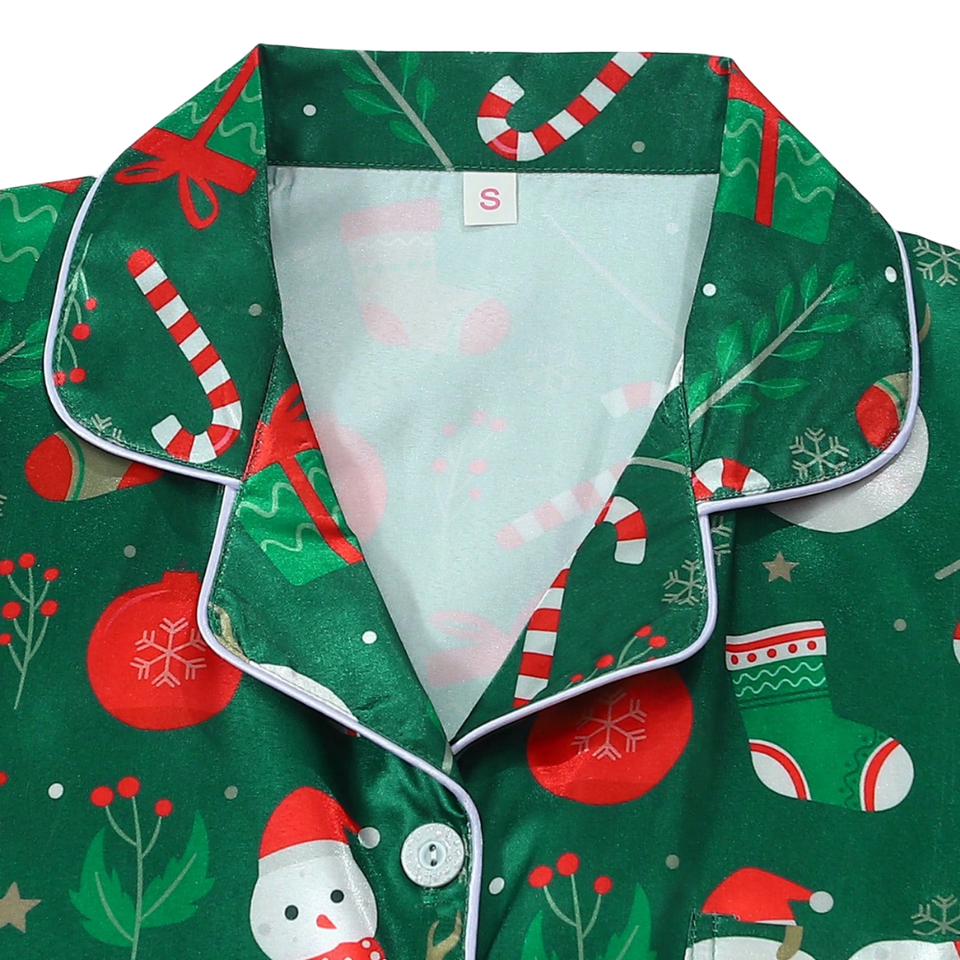 High Quality Custom Printed Women's Sleepwear 2 Piece Casual Home Wear Cotton Pajamas Satin Made Christmas Design Pajama Sets