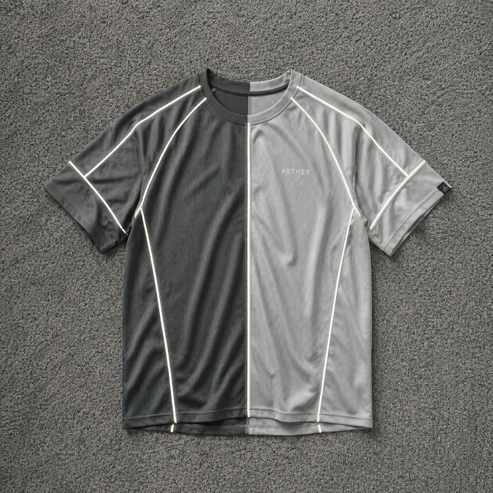High Quality Custom Reflective Piping Running Shirt Men's Breathable Mesh Quick Dry Split Color Half and Half Gym Top OEM Sports