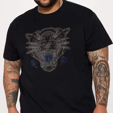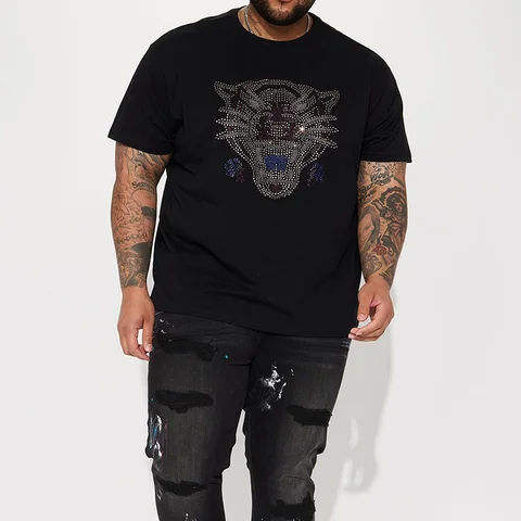 High Quality Custom Rhinestone Men's Shirt 100% Cotton Breathable Sparkle Tee Personalized Crystal Eco-Friendly Solid Color