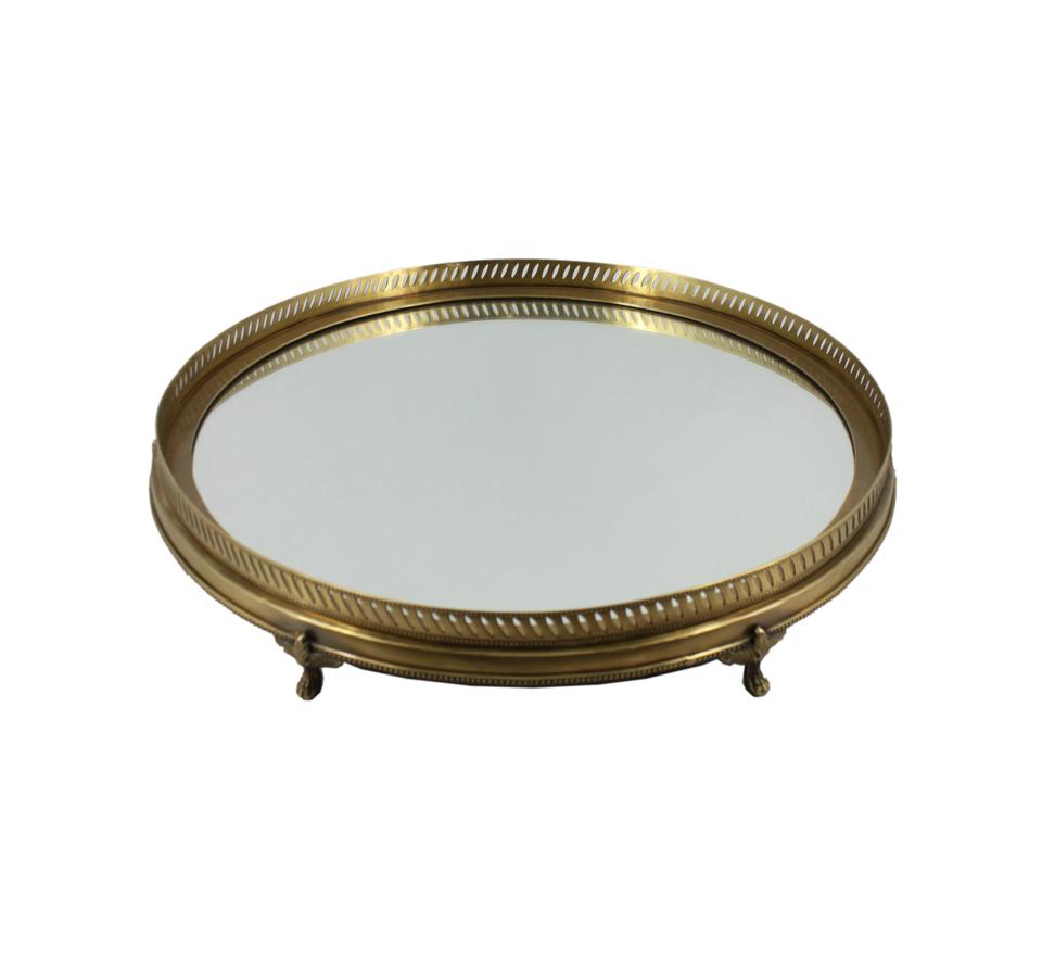 High Quality Custom Shape Metal Mirror Tray Gold Plated Iron with Glass Handle New Design Serving Tray for Christmas Storage