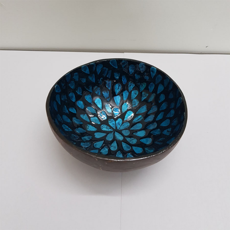 High Quality Custom Size Eco-Friendly Coconut Shell Seashell Hand Painted Floral Pattern Handicraft Salad Bowl Lacquerware