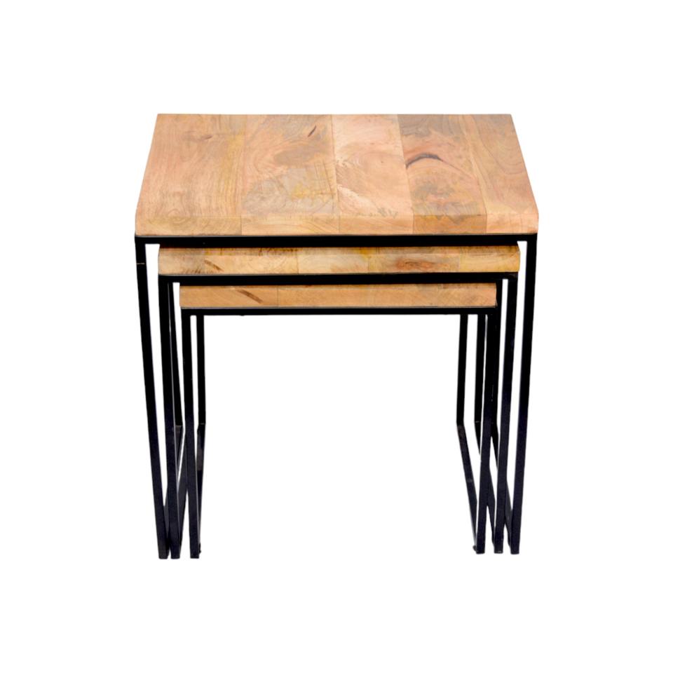 Home Decor Furniture Set of 3 Wooden and Metal Table Home Hotel Furniture Nesting side table