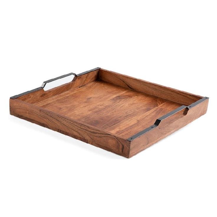 High Quality Modern Custom-Size Rectangle Wooden Multifunction Serving Tray Sustainable Handmade Handles for Home Kitchen Dinner