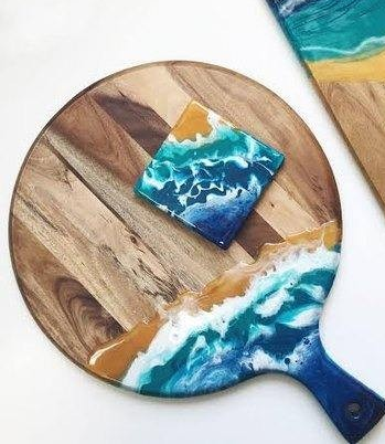 High Quality Custom Size Resin Cutting Board with Wooden Cup Coaster for Cheese Hot Selling Chopping Block Product