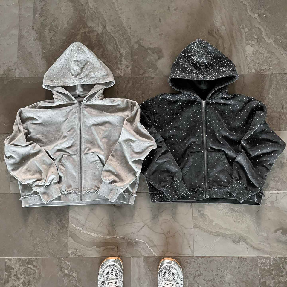 Product name:Full Zip up With Logo Rhinestone Hoodie