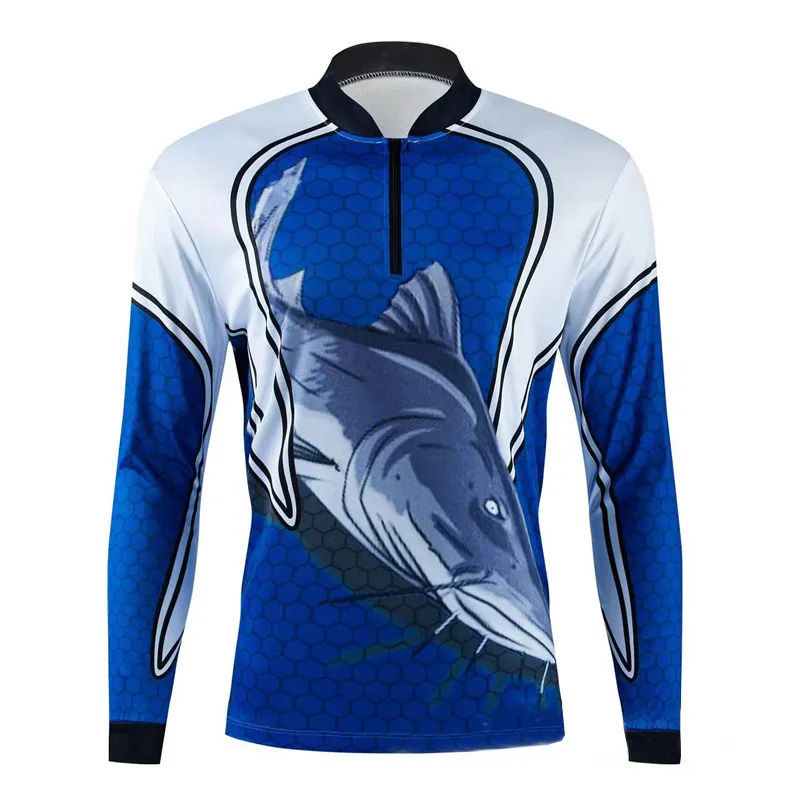 High Quality Custom Sublimation Print Quick Dry Long Sleeve 100% Polyester Fishing Jersey Breathable OEM Fishing Wear Plus Size