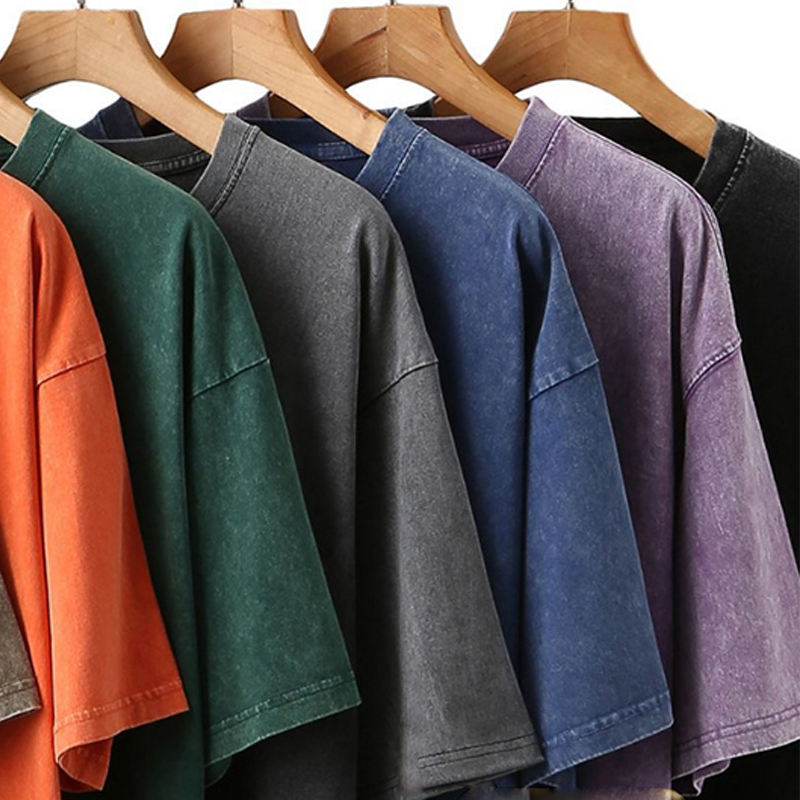 High Quality Custom T Shirt Cotton Drop Shoulder Vintage Plain Casual Acid wash Blank Oversized Heavyweight Men'S T-Shirts