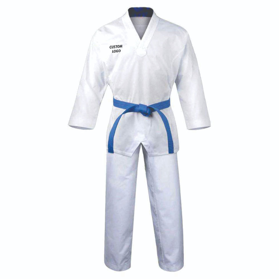 High Quality Custom Taekwondo Uniform 100% Cotton Stretch Front Logo Martial Arts Wear OEM Service