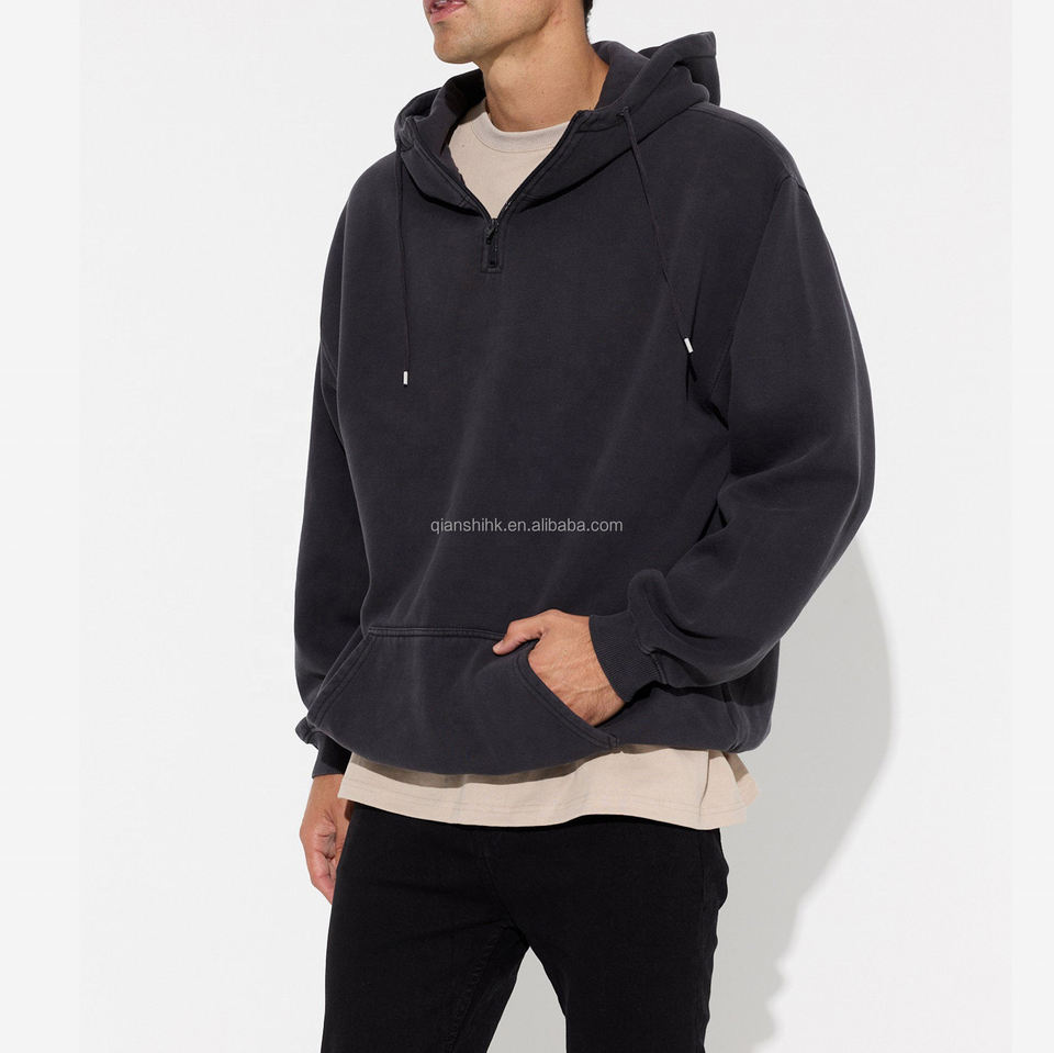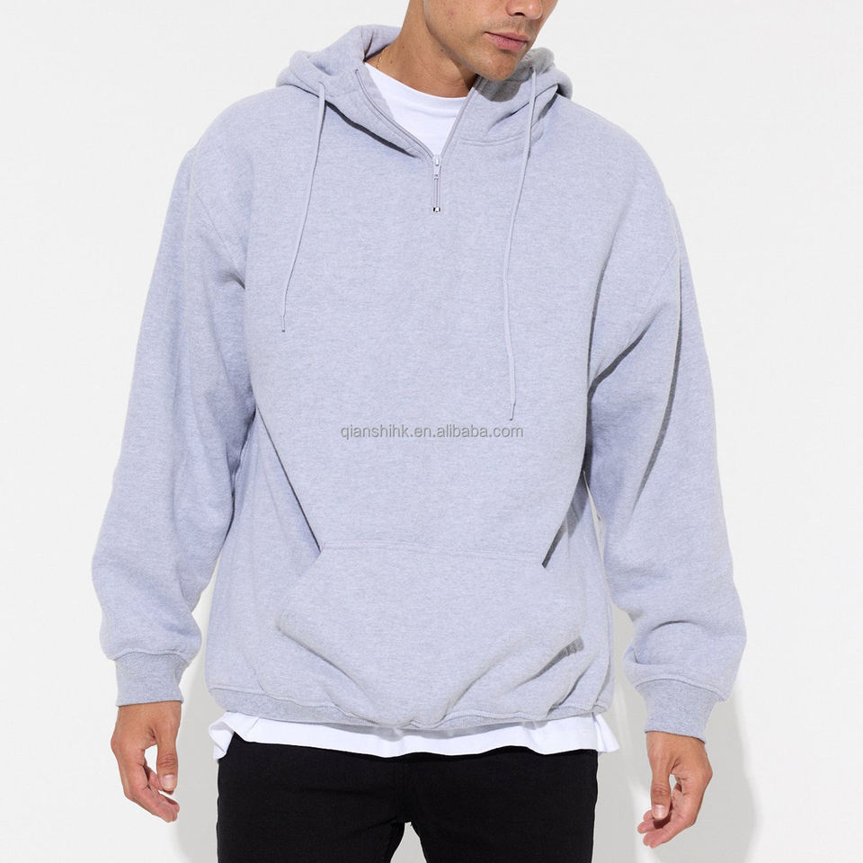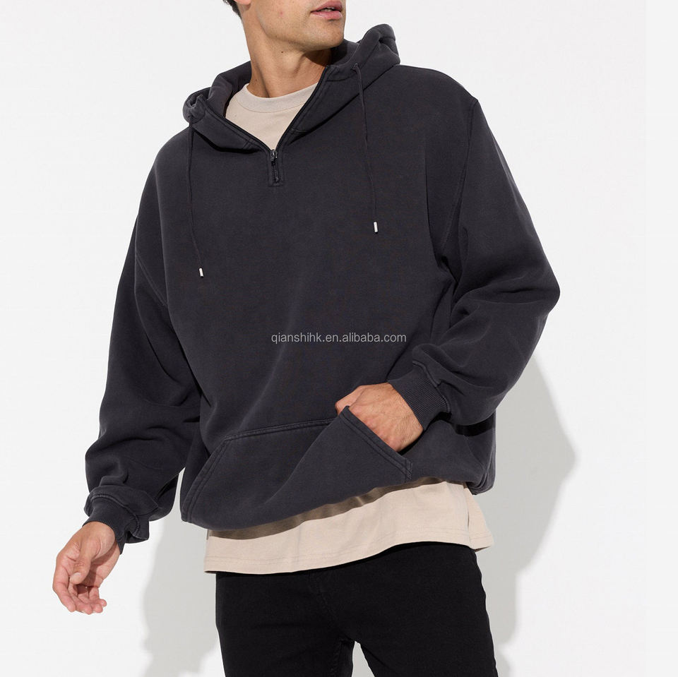 High Quality Custom Terry Cotton 1/4 Zip up Hoodie for Men Casual Fleece Heavyweight Half Zipper Pullover Cotton Hoodie Unisex