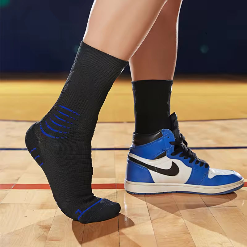 High Quality Custom Thick Quick Dry Compress Knitted Sport Fitness Socks Men Anti-Slip Striped Pattern Autumn Season Wholesale