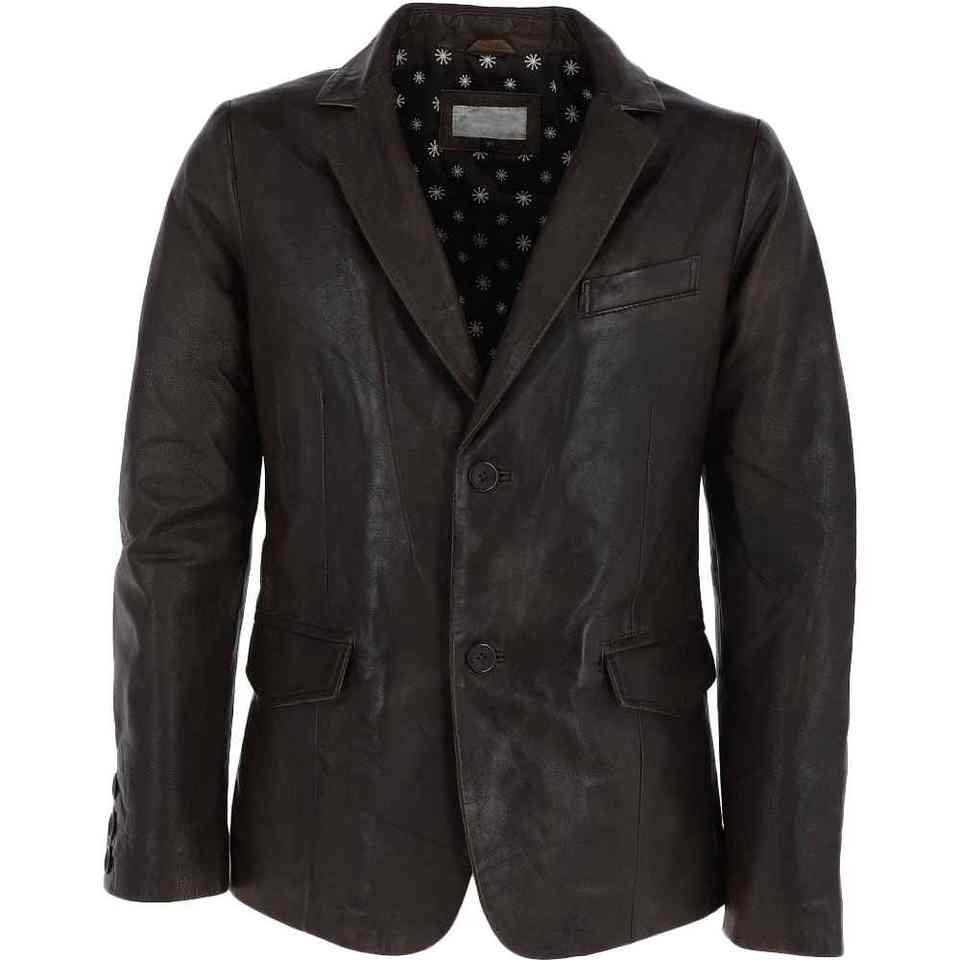 High Quality Custom Two Button British Style Leather Blazer Men's Faux Lamb Leather Jacket Stand Front Logo Fashion Jacket