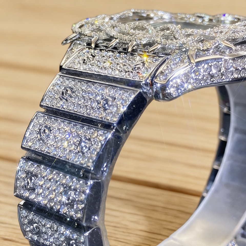 High Quality Custom VVS Full Inlaid Moissanite Luxury Watch | Shiny Even in Natural Light | Hip Hop Style Men's Business Watch