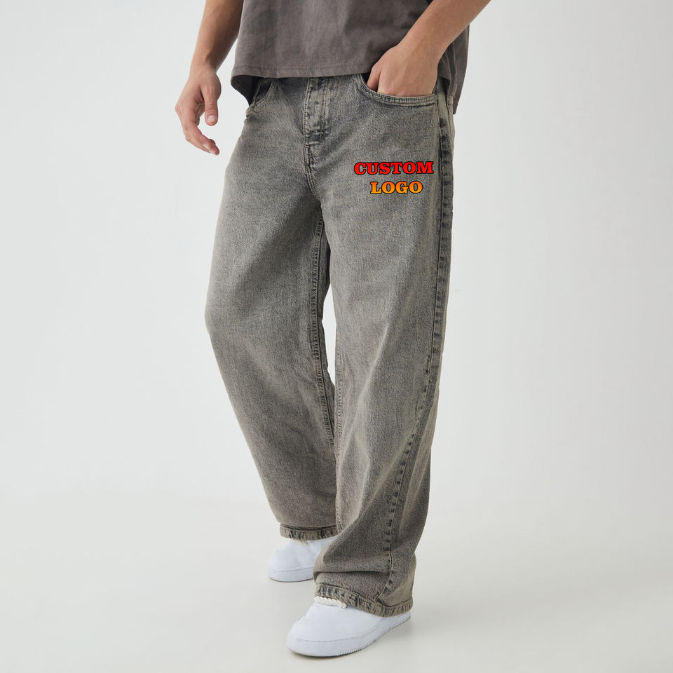 High Quality Custom Washed Denim Jeans for Men's Casual Baggy Jean Classic Loose Fit Hip Hop Vintage denim Trousers for man