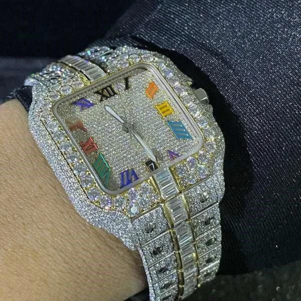 New High Quality Custom Men's Watch Iced Out Lab Grown Diamond Studded Analog Hip Hop White Gold & Stainless Steel Band