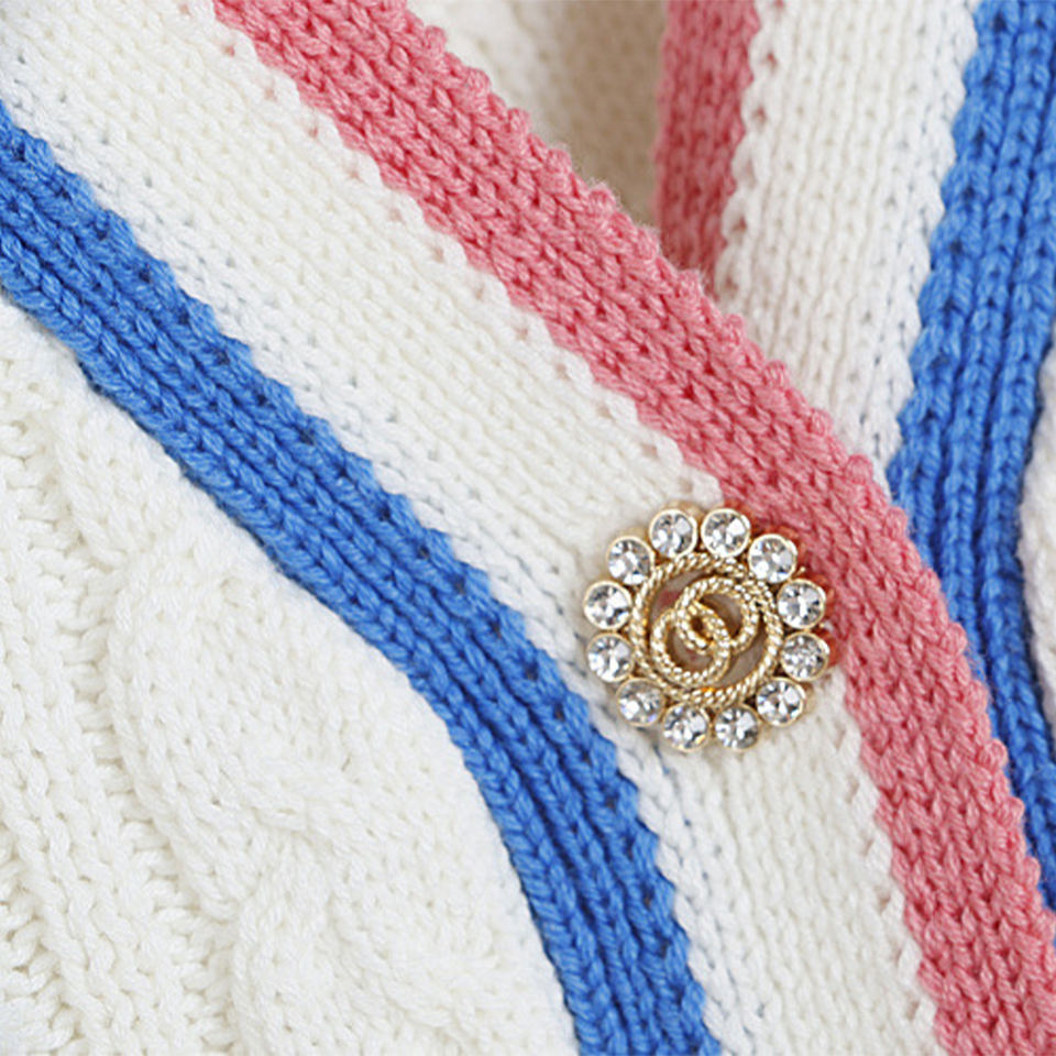 High Quality Custom White Acrylic Knitted Casual Women's Winter Cardigan Varsity Sweater V Neck Button Front Logo Embroidery
