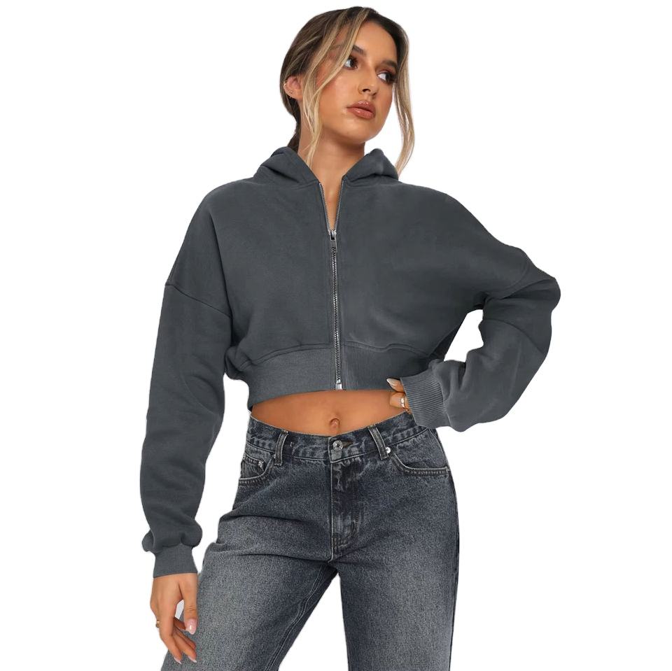 High Quality Custom Women's Oversized Crop Top Hoodie Hip Hop Style Pulsed Silk Streetwear Plus Size Winter Wear Women's Hoodies