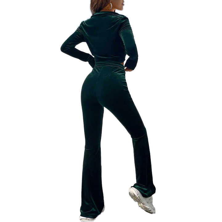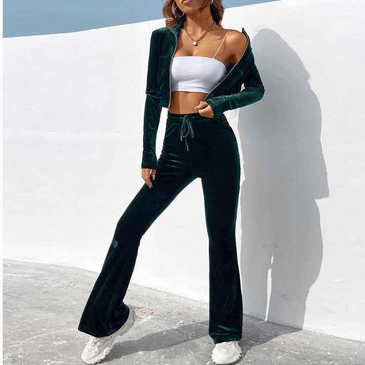 High Quality Custom Women's Velour Tracksuit Zip-up Cropped Hoodie and Jogger Set Casual Sports Velvet Sweatsuit
