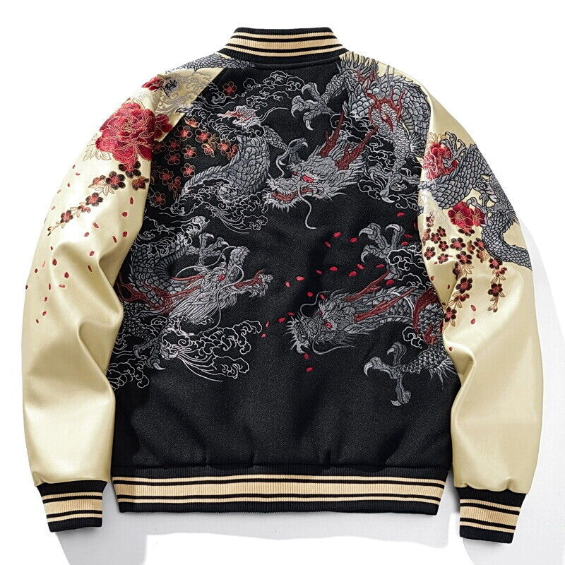 High Quality Custom Canvas Stand Collar Front Pocket Bomber Jacket with Chenille Embroidery for Men
