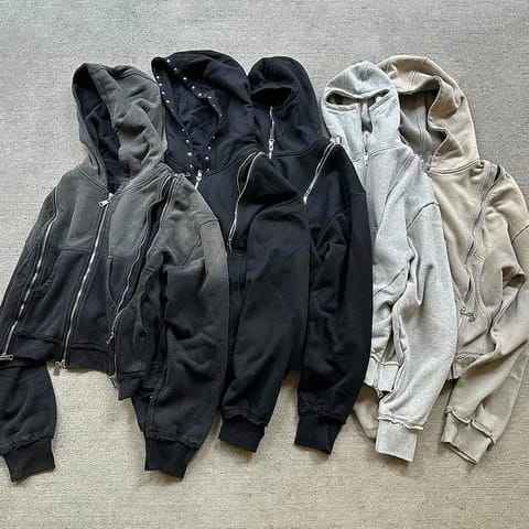 High Quality Custom Y2K Blank Acid Wash Cotton Streetwear Unisex Heavyweight Oversized Cropped Boxy Mask Full Zip up Hoodie