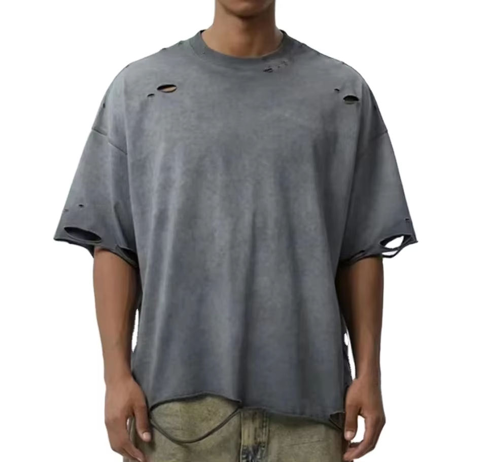 High Quality Custom logo Fashion Oversized Acid Wash 100%cotton 300 250gsm T-shirts Men's Vintage Tshirt Ripped Distressed Boxy