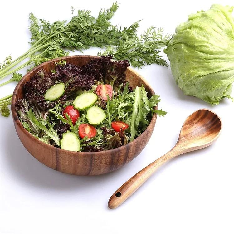 High Quality Customizable Acacia Wood Eco-Friendly Polished Surface Certified Lightweight Salad Bowl Classic Handmade MULTI