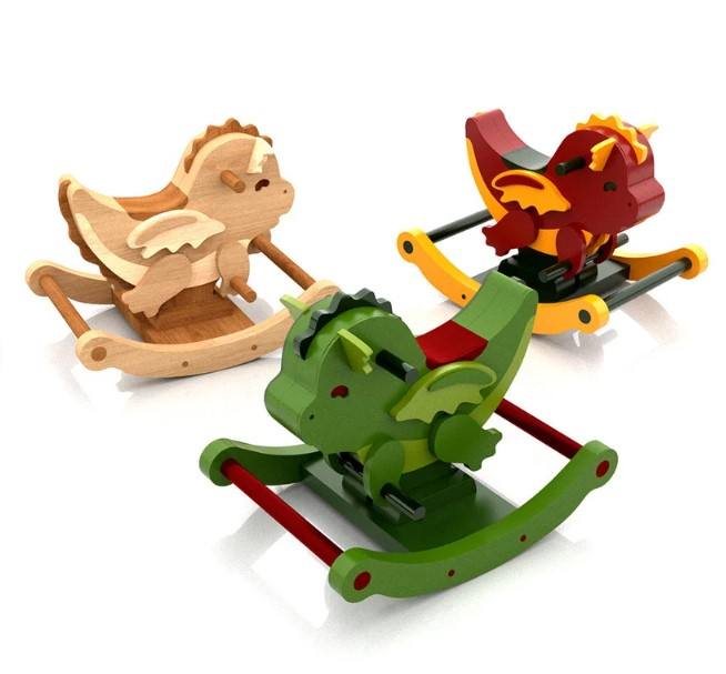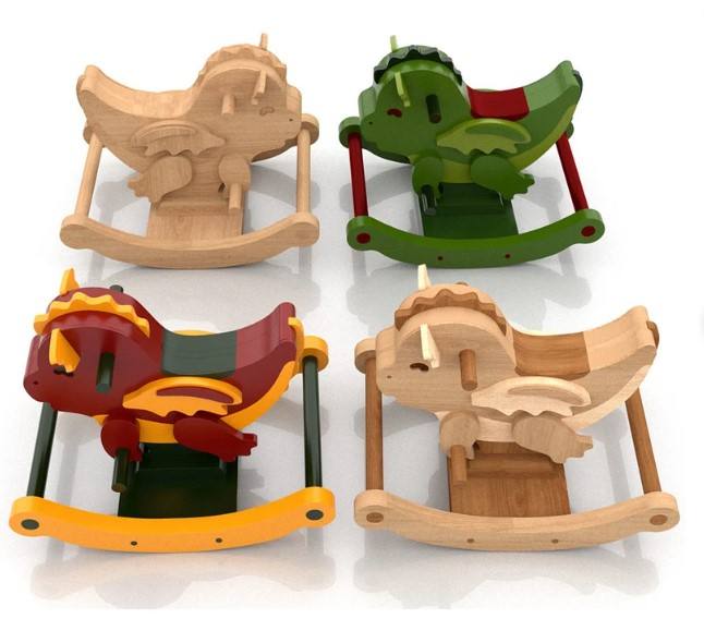 High Quality Customizable Little Dragon Wooden Rocking Chair for 2-4 Year Old Children Classic Toy