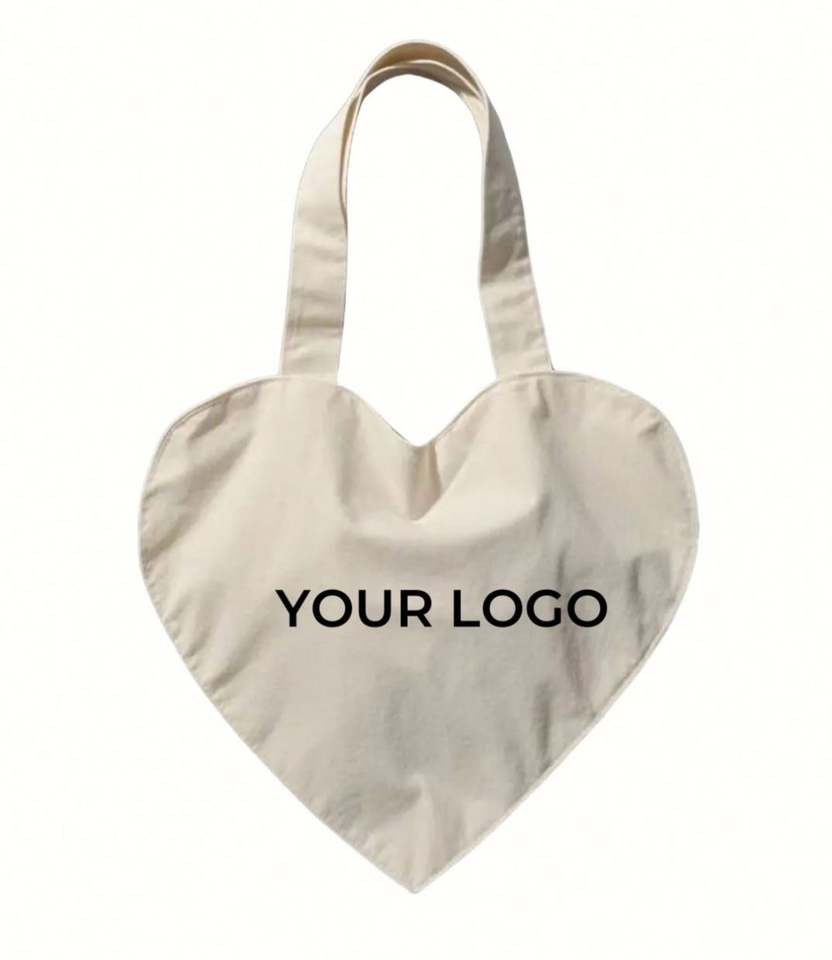 High Quality Customization Printed Nature Color Eco-friendly Large Capacity Reusable Heavy Canvas Tote Bag with Heart Shape