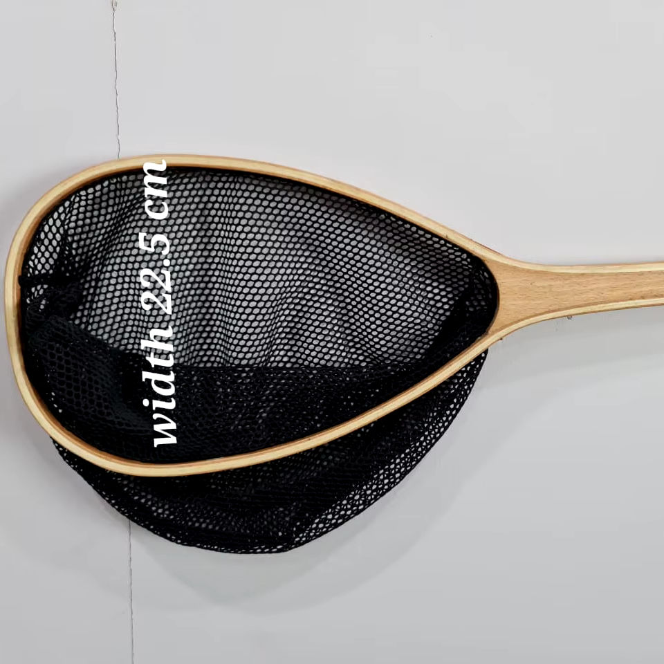 High Quality Customize Wooden Fly Fishing Trout Net Set with Mesh Net and Long Elastic Hanging Hook
