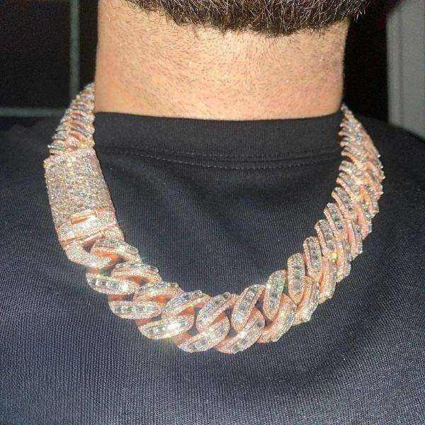 High Quality Customized 20mm Hip Hop Cuban Link VVS Moissanite Diamond Chain 925 Sterling Silver Rhodium Plated Unisex