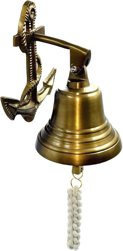 Decorative Antique Plated Nautical Ship Wheel Hanging Wall Bell White Rope High Quality Brass Large Door Bell Competitive Rate