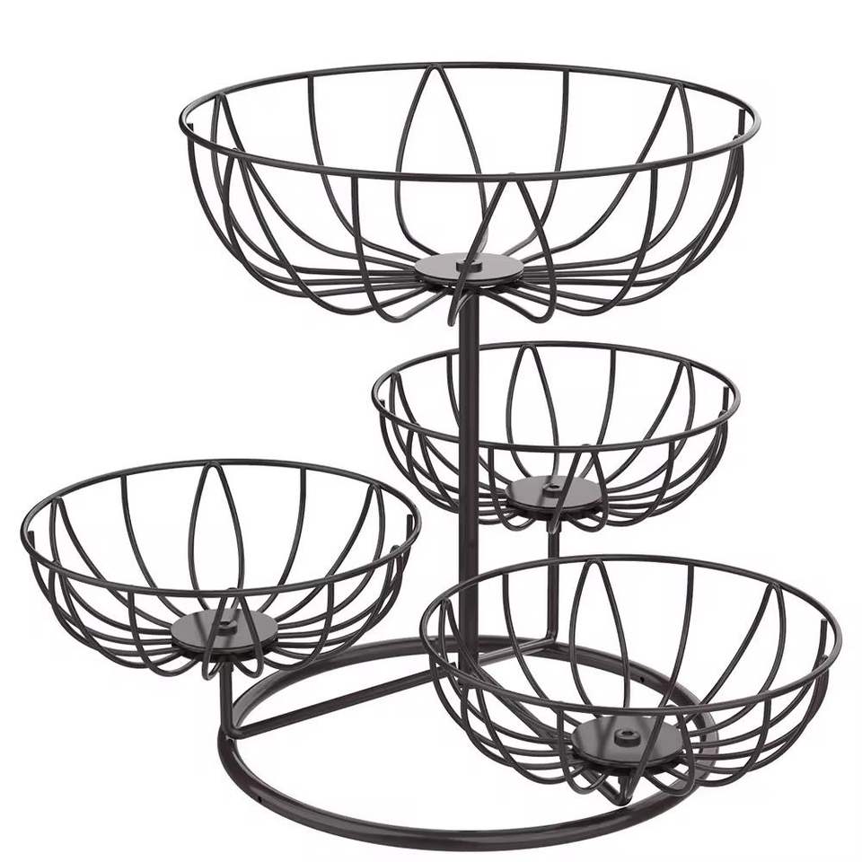 High Quality Customized Four-Basket Round Shape Fruit Basket Handmade Black Stainless Steel for Kitchen Use Wholesale