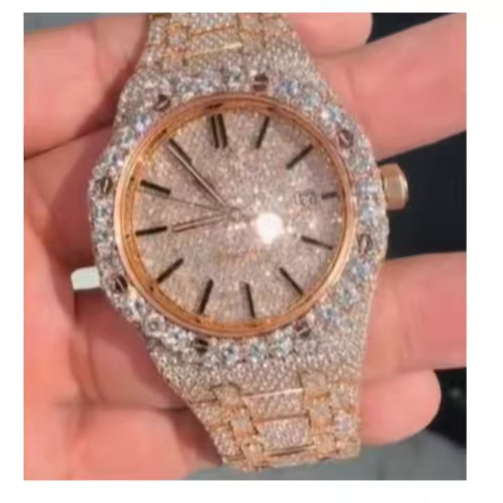 High Quality Customized Iced Moissanite Diamond Watch for Men VVS Diamond Date Display Limited Edition Hip Hop Style
