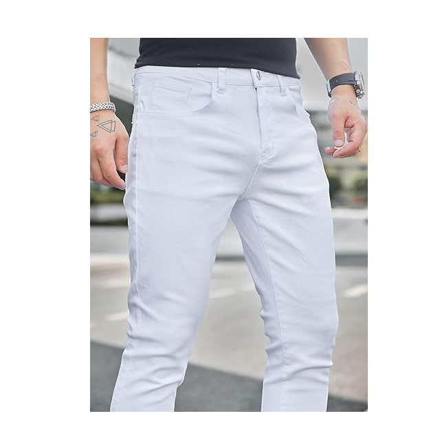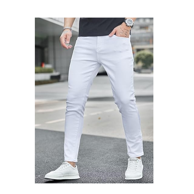 High Quality Customized Jeans For Men's White Color Skin Fit Jeans Narrow Shape Denim Pant For Men