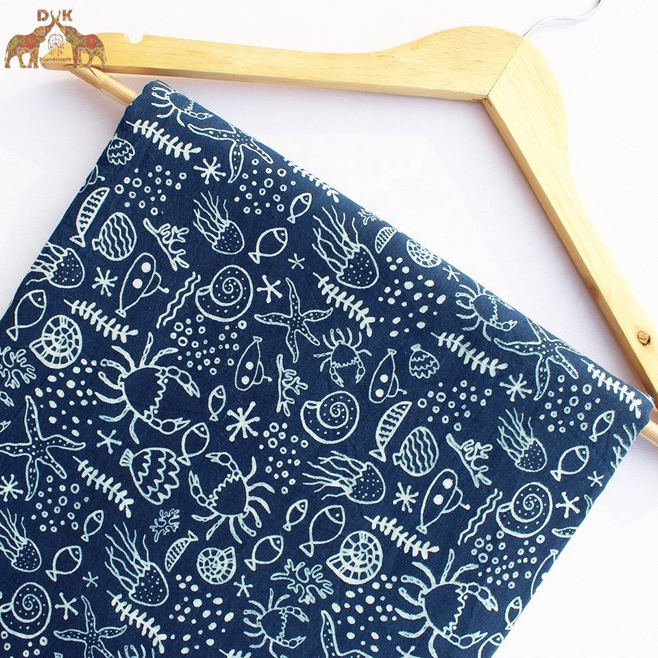 High Quality Customized Lightweight Indigo Dabu Cotton Fabric Natural Animal Print for Home Decor Dresses Curtains Bags too!