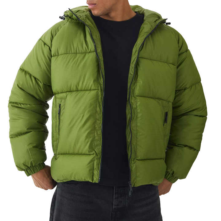High Quality Customized Logo Printing Light Weight Cheap Price Best Design Down Green Puffer Jacket With Full Sleeves