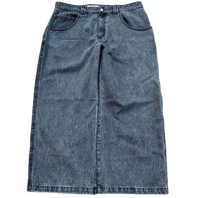 High Quality Customized Men's Baggy Wide Leg Denim Pants 100% Cotton Breathable Casual Style Embroidery Logo Dark-Colored
