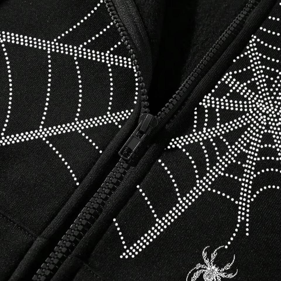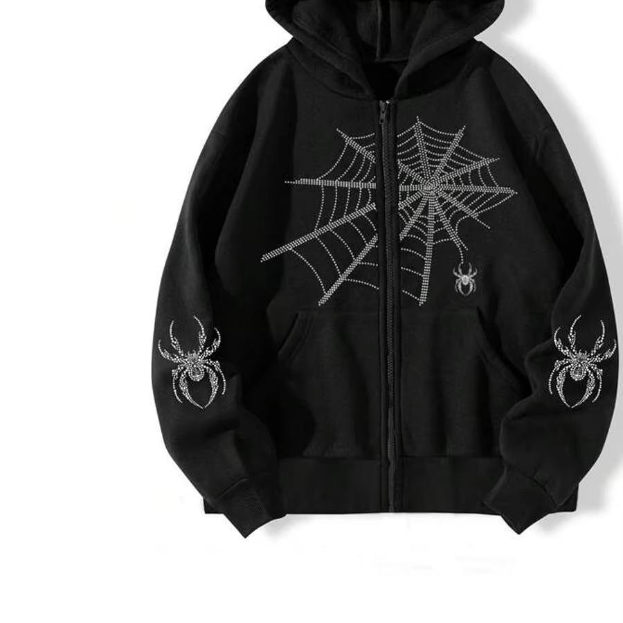 High Quality Customized Men's Winter Streetwear Regular Fit Embroidered Rhinestone Zipper Hoodies 100% Cotton Fleece Wholesale