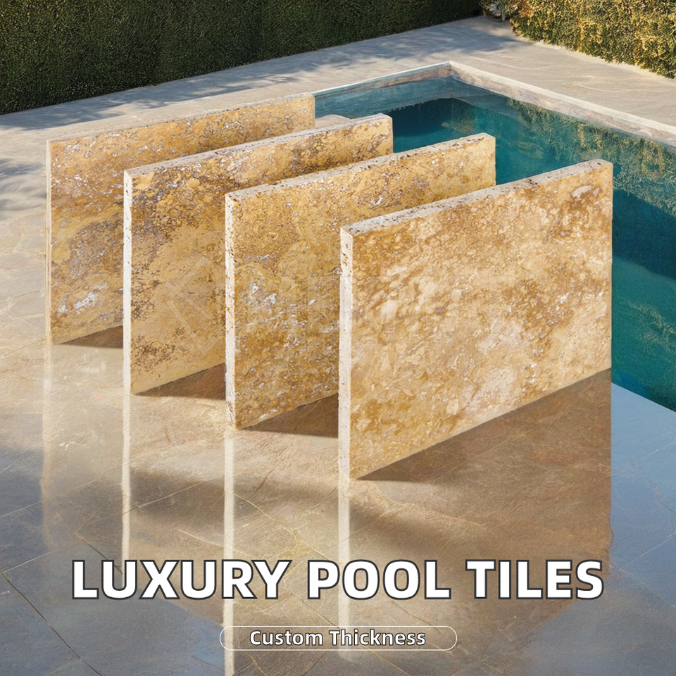 High Quality Customized Modern Design Natural Stone Travertine Swimming Pool Deck Tiles Tumbled Surface Finish Graphic Design