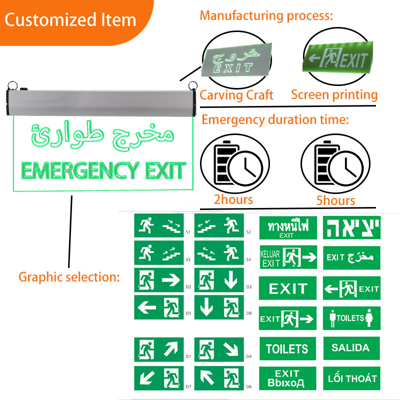 High Quality Customized Rechargeable 3W LED Exit Light Sign for Emergency Use Led Emergency Light Emergency Tag