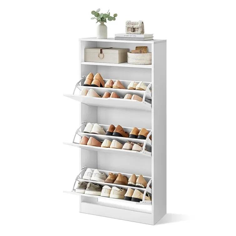 High Quality Customized White MDF Wood Storage Shoes Cabinet with 18 Pair 3 Drawer for Living Room, Bedroom, Home Office