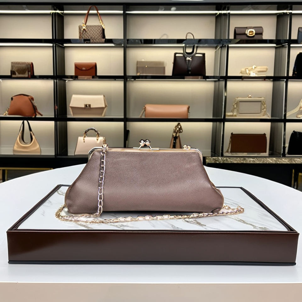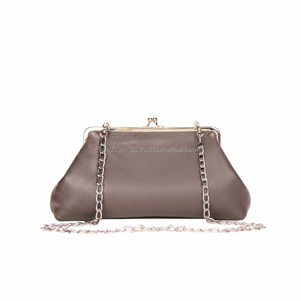 High Quality Customized Women's Western Leather Clutch Trendy Mini Lady Handbag with Luxury Metal Frame Sling Bag Wholesale