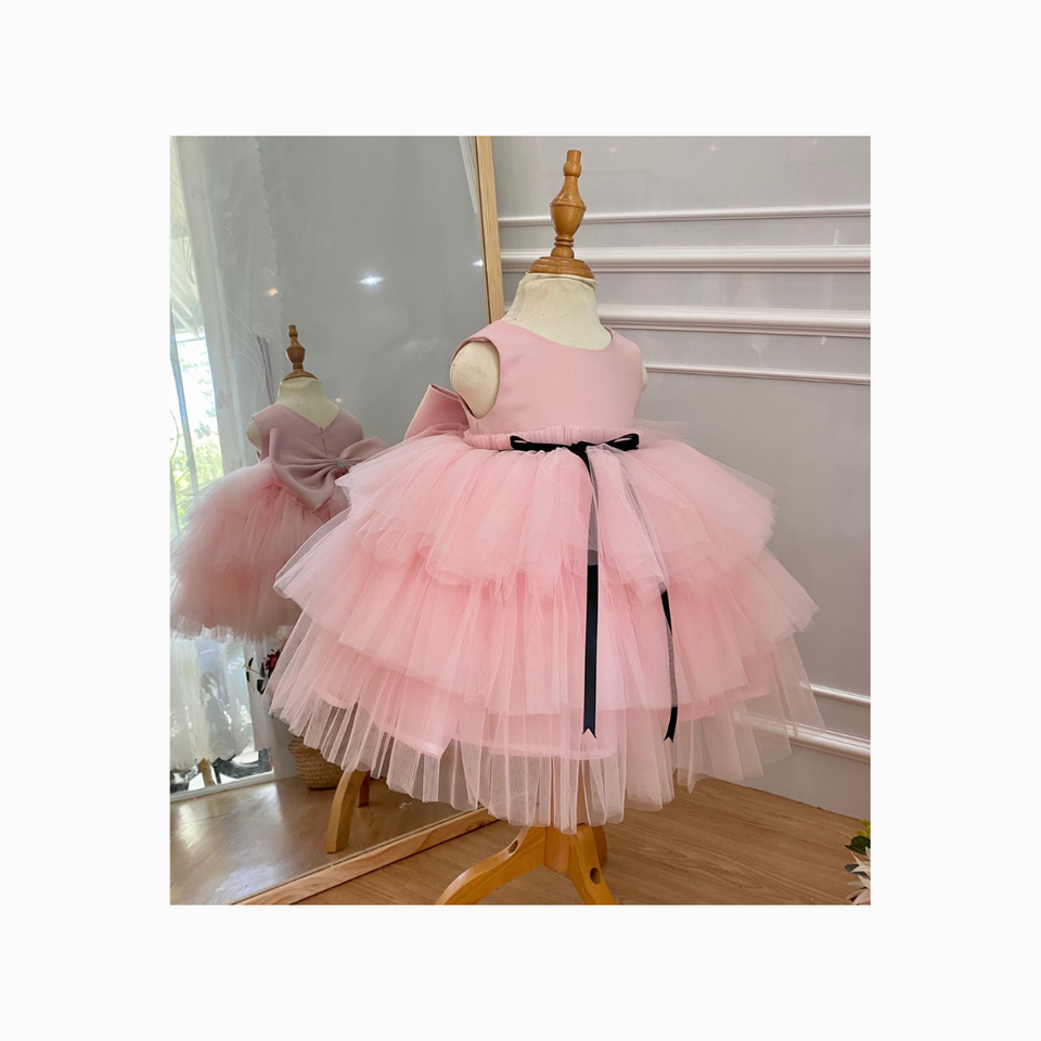High Quality Cute 3D Mesh Princess Dress for Girls New Western Halter Layered Features Plus Size Short Sleeve ODM for Children