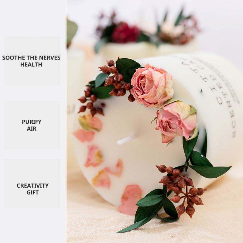 High Quality Cylindrical Aromatherapy, Air Cleaner Smokeless Candle Romantic Flower Pillar Scented Candles/