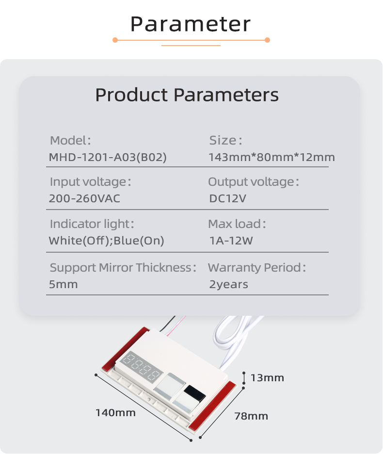 Function:Hand ON/OFF+Color Adjustable+Anti-fog