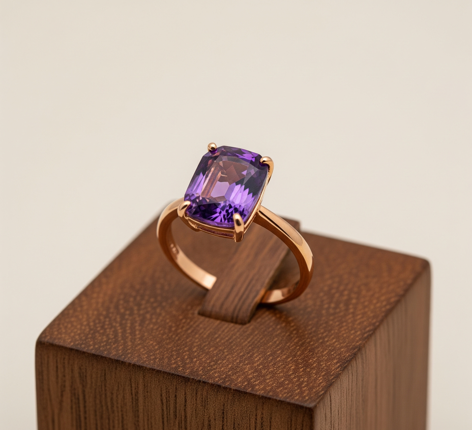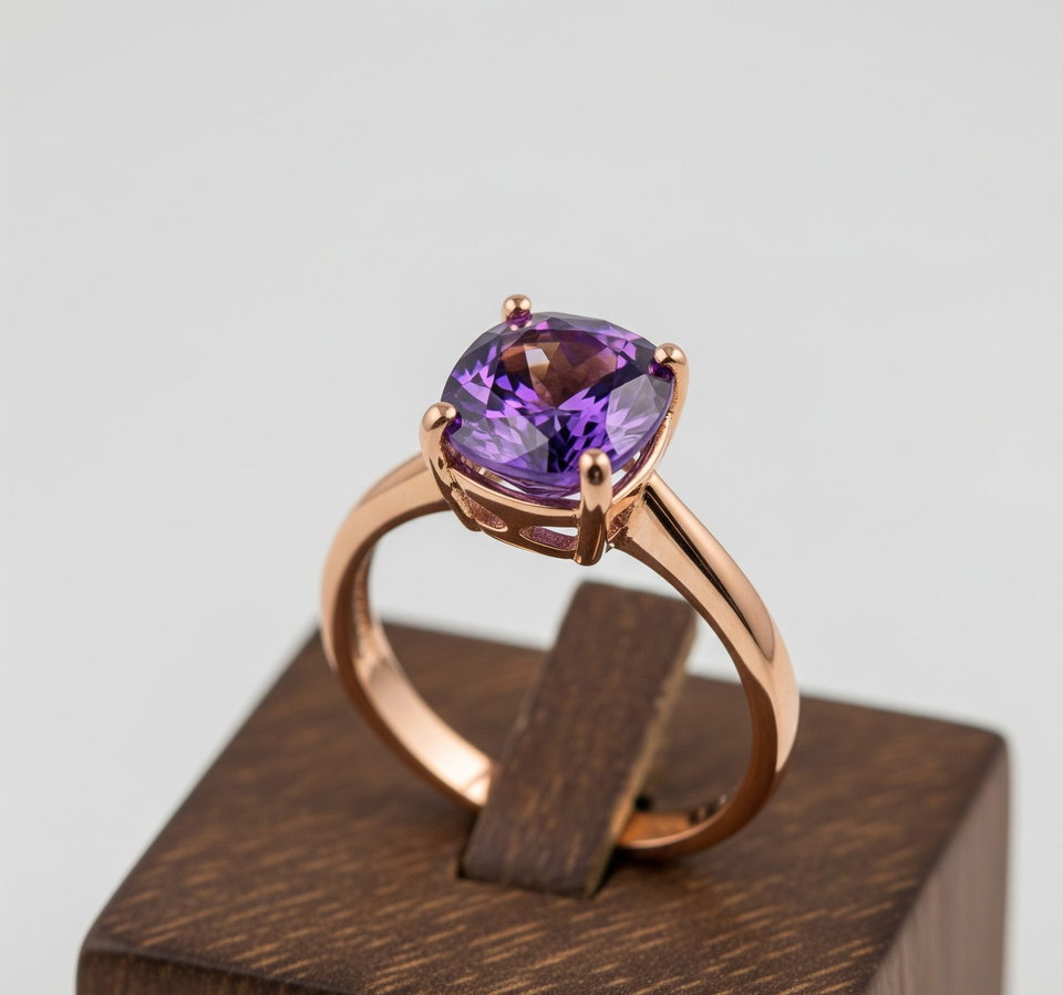 High Quality Daily Wear 925 Silver Fashion Ring Amethyst Quartz Rose Gold Plating Trendy Wedding Parties Band Stylish Gift
