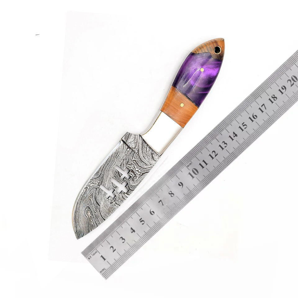 High Quality Damascus Steel Bull Cutter Knife Camping Hunting Fixed Blade Cowboy Knife with Leather Sheath Western Knives