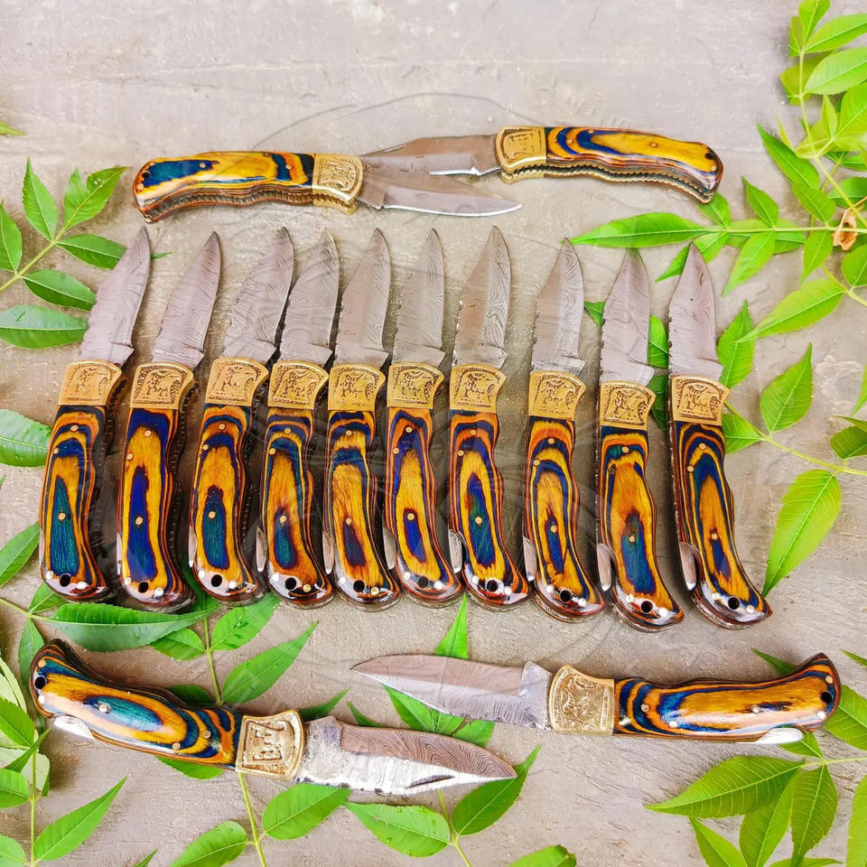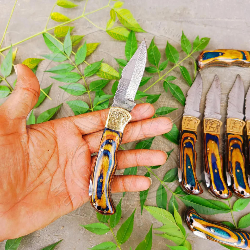 High Quality Damascus Steel Folding Blade Camping Pocket Knife for Outdoor Survival Colorful Wood Handle Pocket Knife
