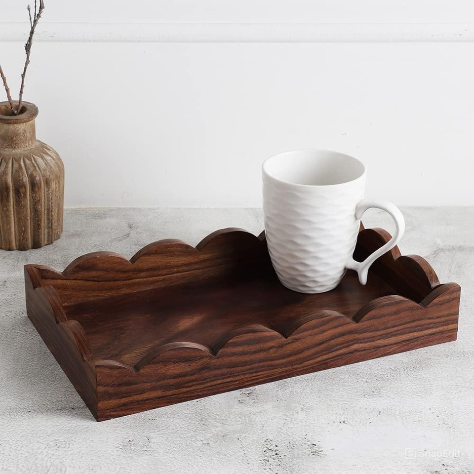 Scalloped Wooden Serving Tray for Kitchenware made in VietnamProduct name