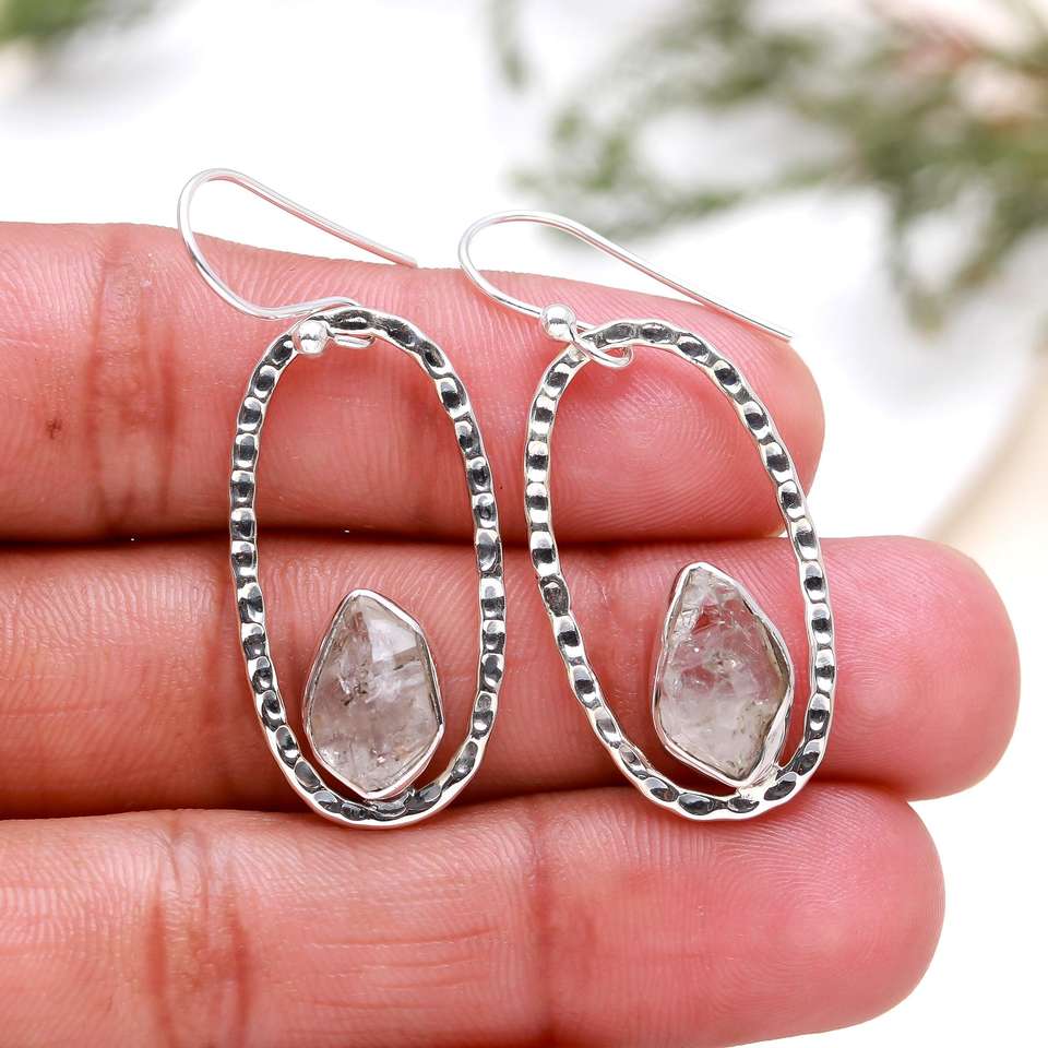 High Quality Deep Royal Look Fancy Cut Herkimer Diamond Drop Earrings 925 Solid Sterling Silver Handmade Earring Wedding Gifts